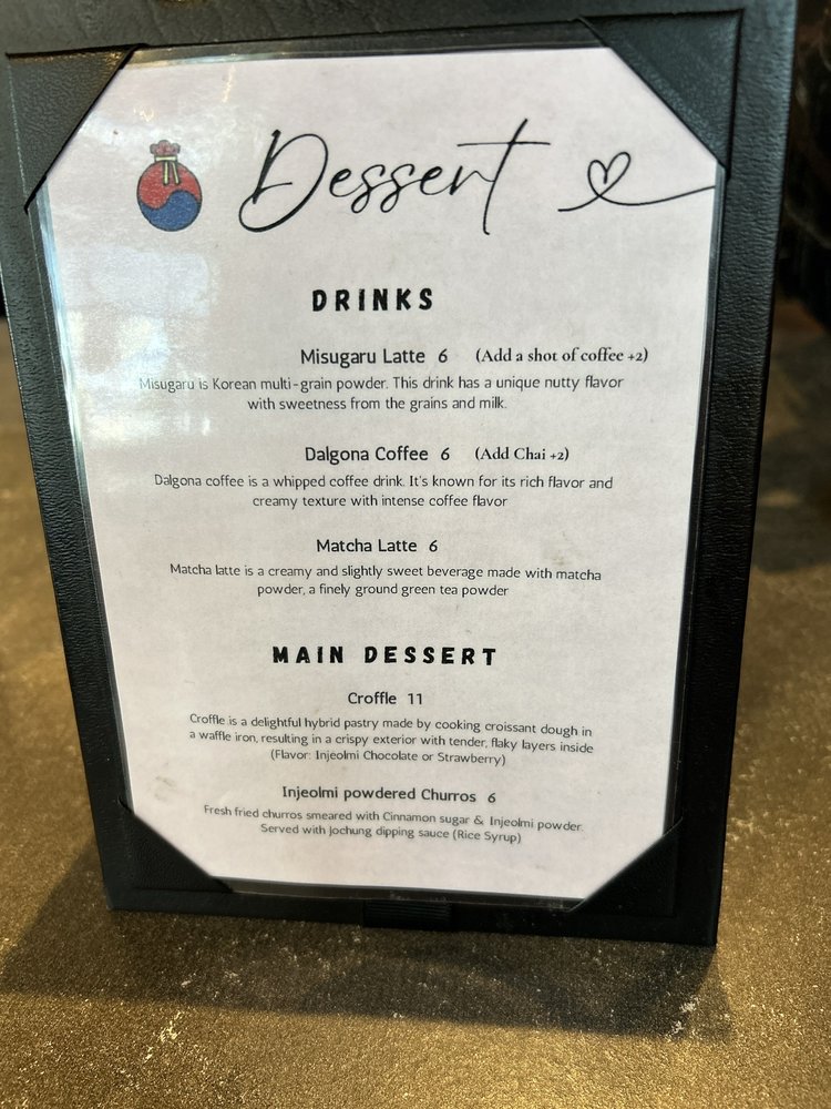 Fresh fried churros smeared with Cinnamon sugar & Injeolmi powder. Served with Jochung dipping sauce (Rice Syrup)